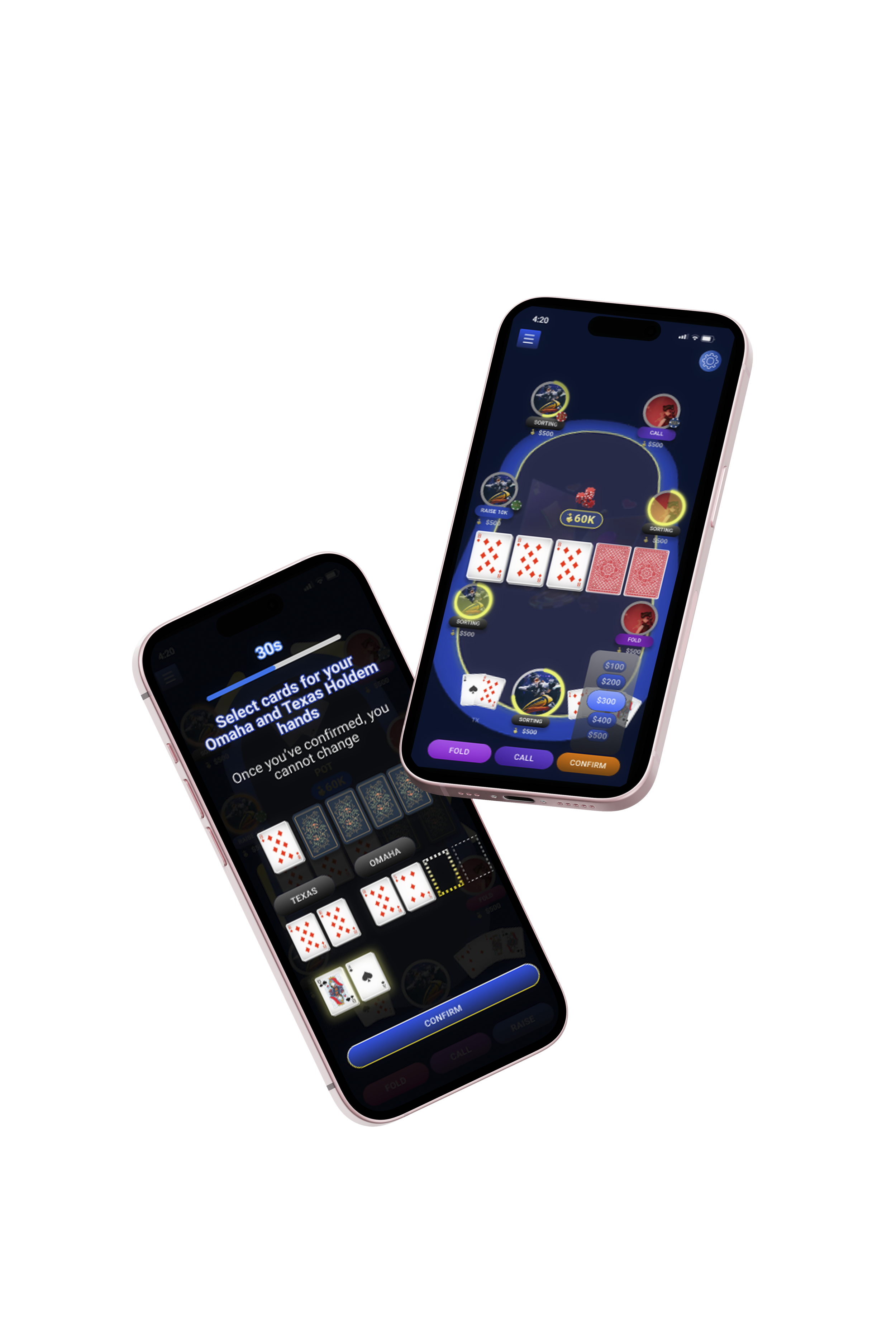 Poker app with unique game play modes